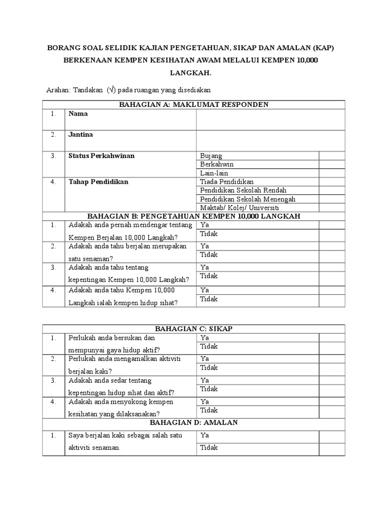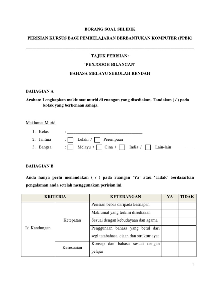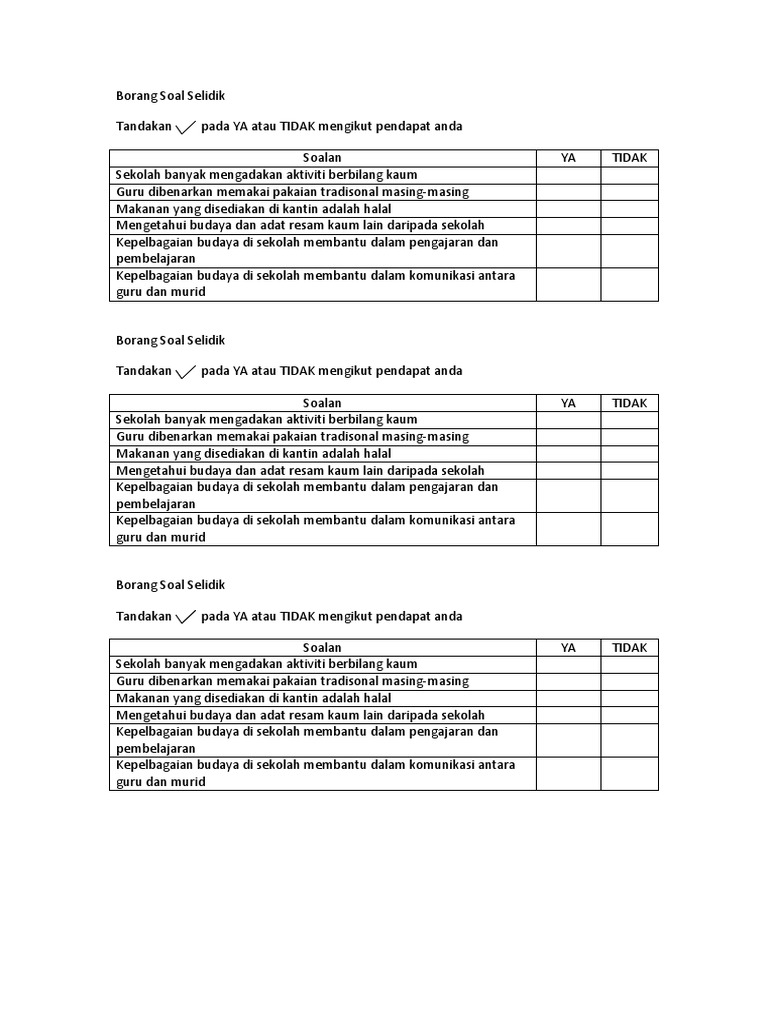 Contoh Borang Soal Selidik Ya Atau Tidak Otosection
